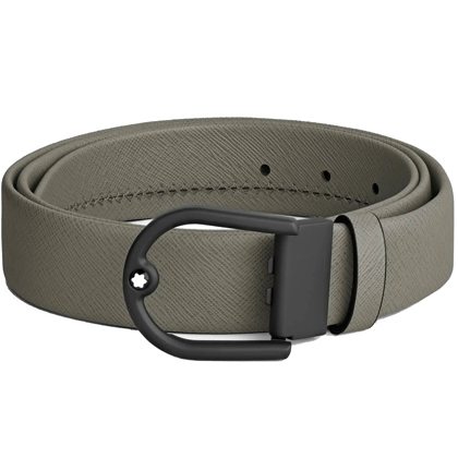 Кожаный ремень 35 мм из кожи серого цвета, пряжка в форме подковы от магазина премиальных ручек Premium Pens в Новокуйбышевске.